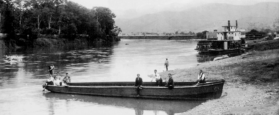 [3] Canoa y buque a vapor en el rio Cauca (1911). Publicado en [Galería] 20 Increíbles postales que evocan los ríos colombianos del siglo XX