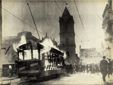 Tiempo después el tranvía fue eléctrico. Su operación fue asumida por la ciudad ya que el Concejo Municipal decidió su compra. En 1948 el asesinato en Bogotá del líder político Jorge Eliecer Gaitán desató la furia de los ciudadanos y una de las olas de violencia más fuertes en la historia de Colombia. El tranvía fue objeto de actos vandálicos por parte de la masa enfurecida. No se recuperó.
